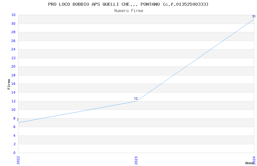 | Anno | Firme | Importi | Media | Naz. | Reg. | Prov. | Comu. |