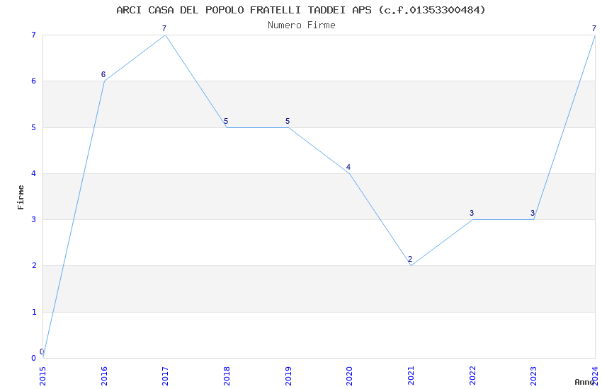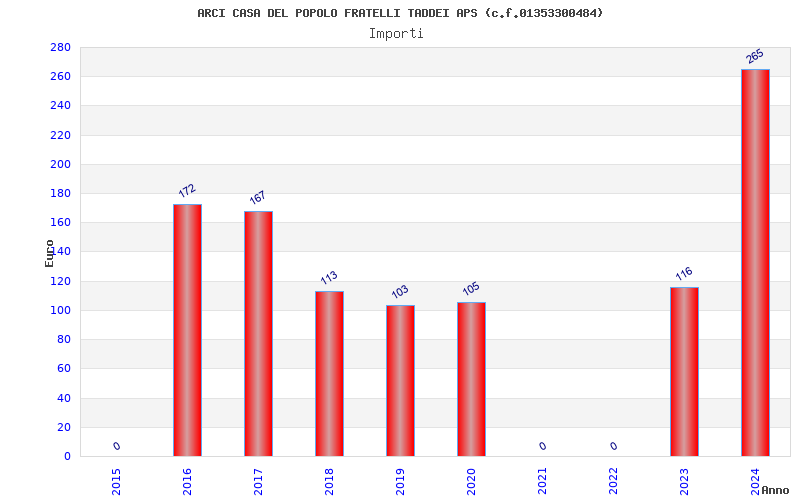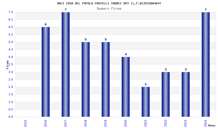 | Anno | Firme | Importi | Media | Naz. | Reg. | Prov. | Comu. |