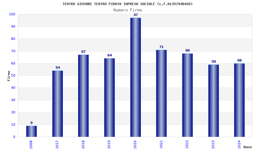 | Anno | Firme | Importi | Media | Naz. | Reg. | Prov. | Comu. |