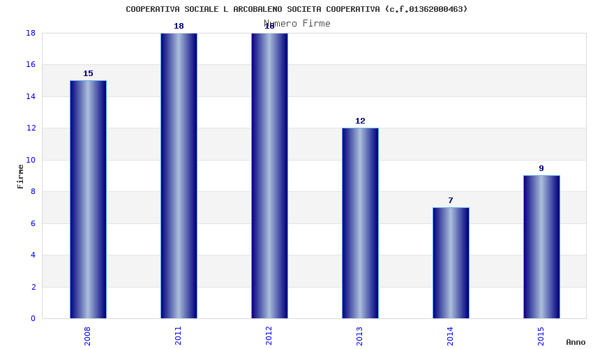 | Anno | Firme | Importi | Media | Naz. | Reg. | Prov. | Comu. |