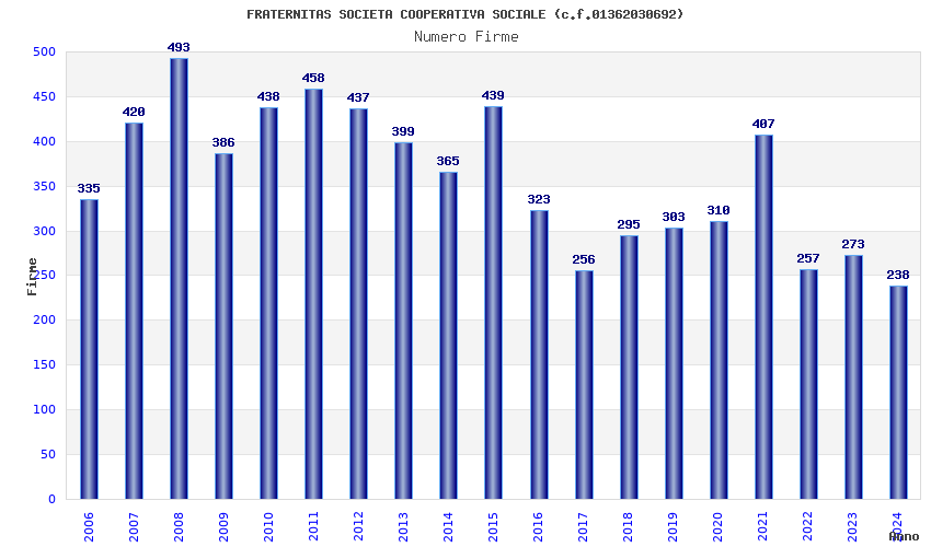 | Anno | Firme | Importi | Media | Naz. | Reg. | Prov. | Comu. |