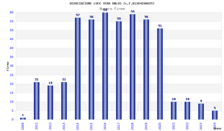 | Anno | Firme | Importi | Media | Naz. | Reg. | Prov. | Comu. |