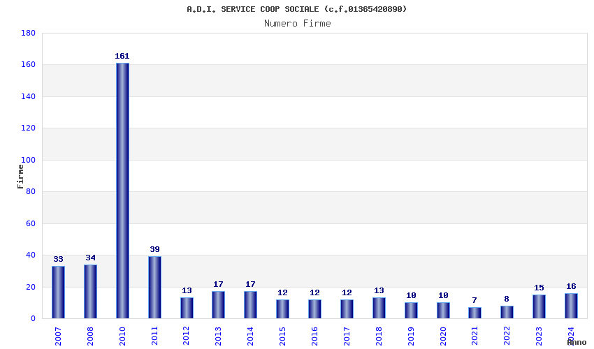 | 2010 | 161 | 3.617,40 | 22,47 | 10.923 | 653 | 54 | 3 |