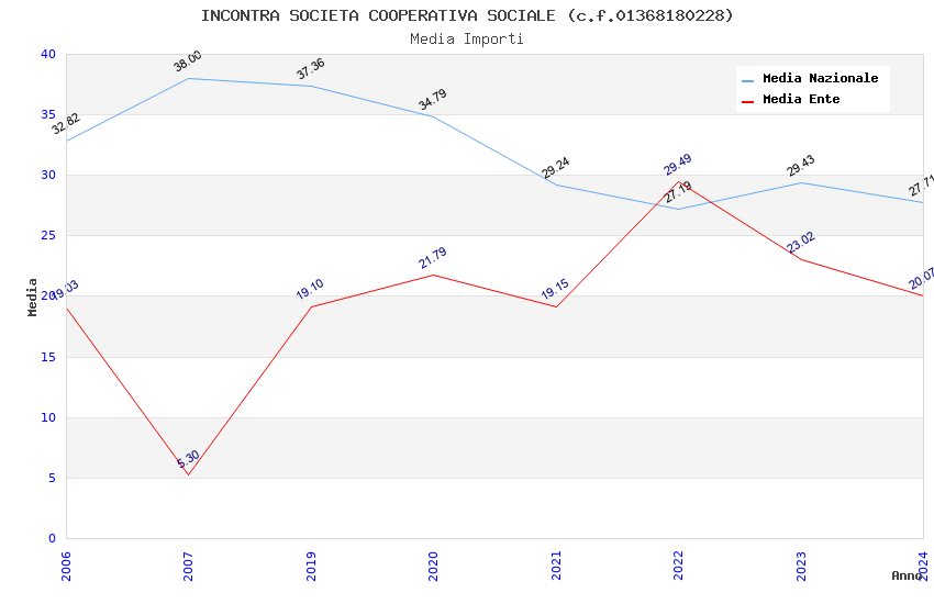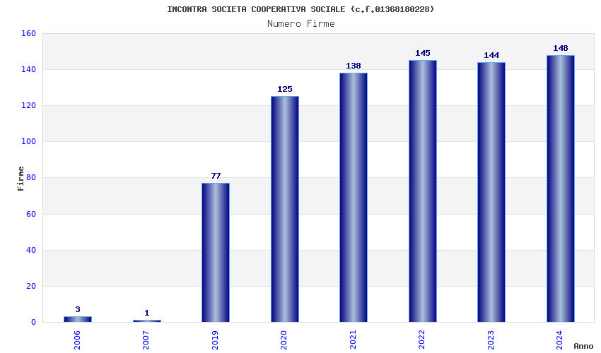 | Anno | Firme | Importi | Media | Naz. | Reg. | Prov. | Comu. |