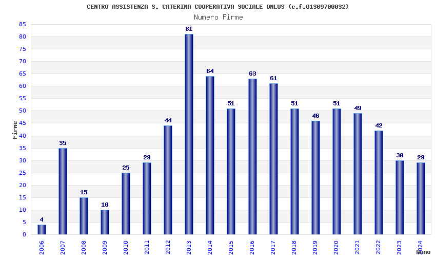| Anno | Firme | Importi | Media | Naz. | Reg. | Prov. | Comu. |