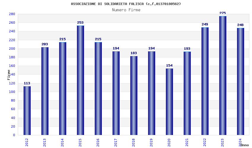 | Anno | Firme | Importi | Media | Naz. | Reg. | Prov. | Comu. |