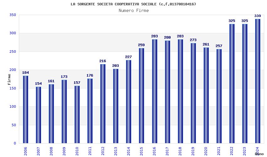 | Anno | Firme | Importi | Media | Naz. | Reg. | Prov. | Comu. |