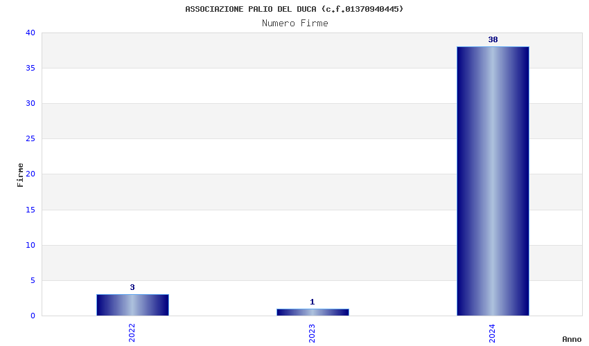 | Anno | Firme | Importi | Media | Naz. | Reg. | Prov. | Comu. |