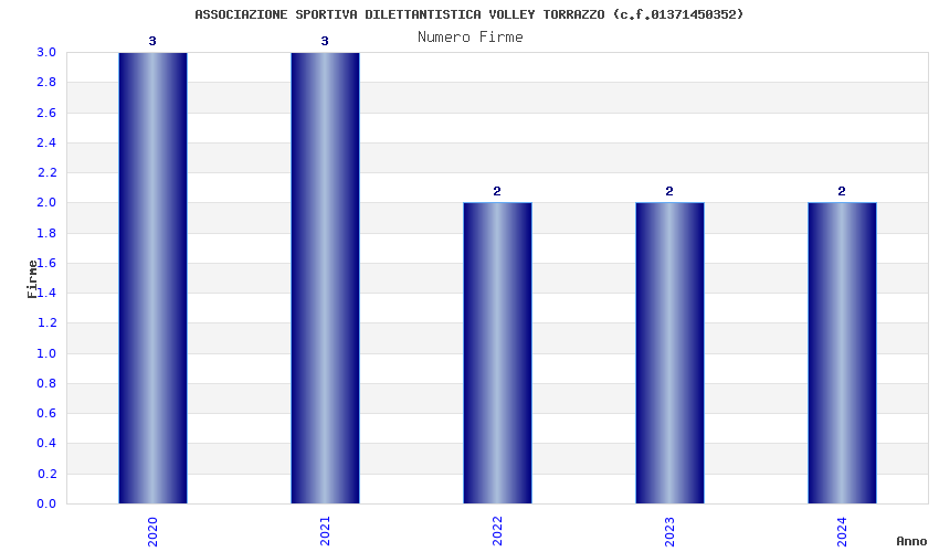 | Anno | Firme | Importi | Media | Naz. | Reg. | Prov. | Comu. |