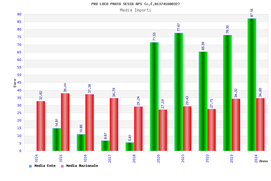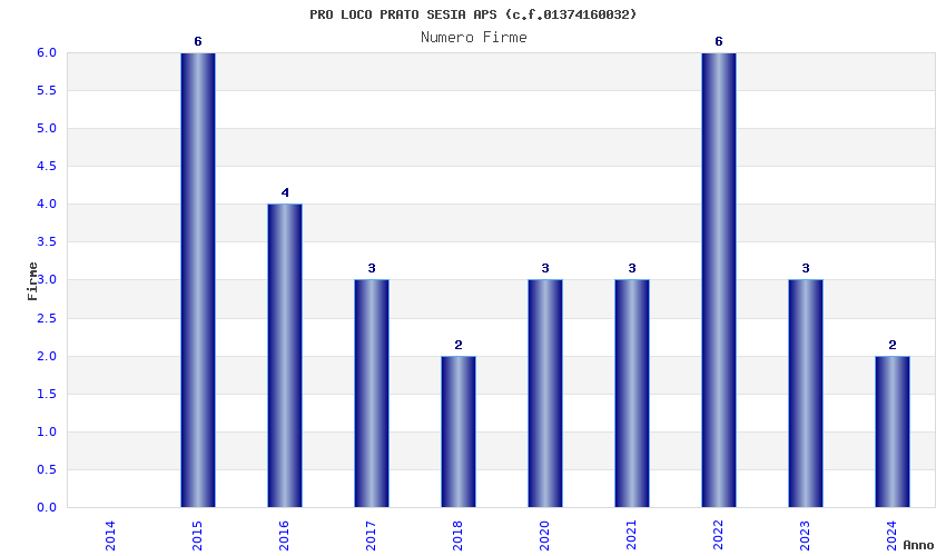 | Anno | Firme | Importi | Media | Naz. | Reg. | Prov. | Comu. |
