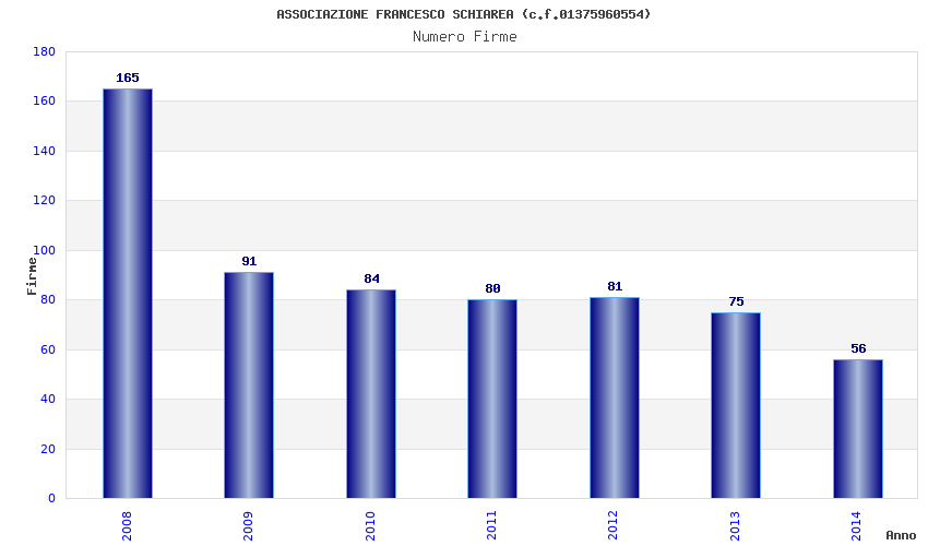 | Anno | Firme | Importi | Media | Naz. | Reg. | Prov. | Comu. |