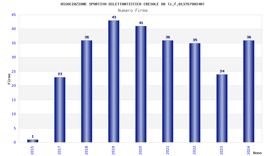 | Anno | Firme | Importi | Media | Naz. | Reg. | Prov. | Comu. |
