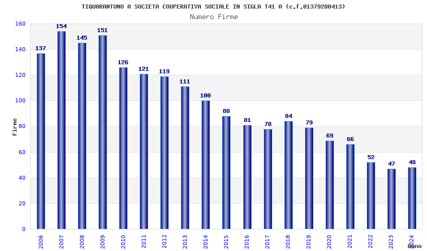 | Anno | Firme | Importi | Media | Naz. | Reg. | Prov. | Comu. |