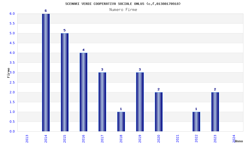 | Anno | Firme | Importi | Media | Naz. | Reg. | Prov. | Comu. |