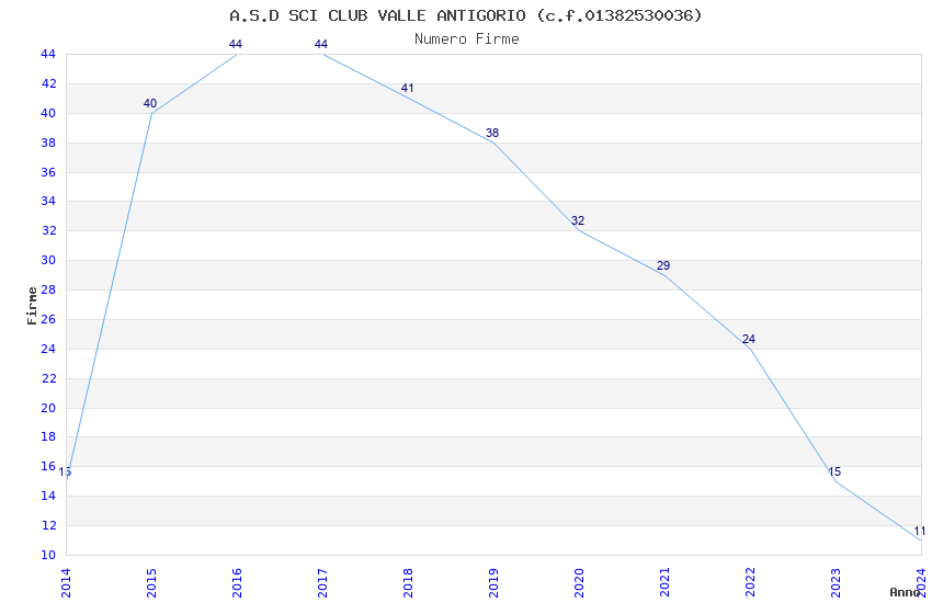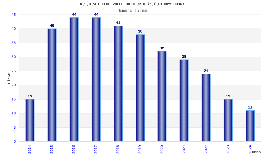 | 2017 | 44 | 1.695,92 | 38,54 | 26.056 | 2.096 | 81 | 2 |
