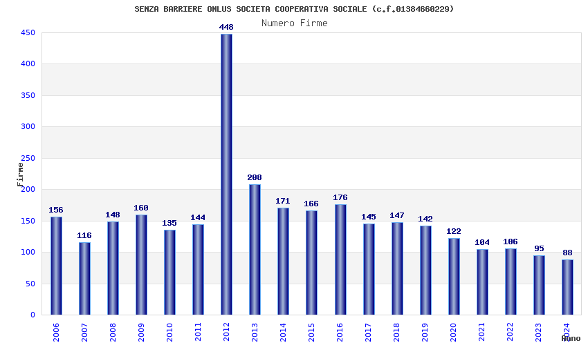 | Anno | Firme | Importi | Media | Naz. | Reg. | Prov. | Comu. |