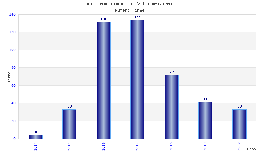 | Anno | Firme | Importi | Media | Naz. | Reg. | Prov. | Comu. |