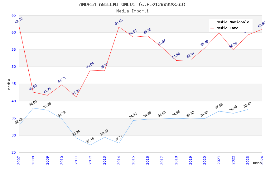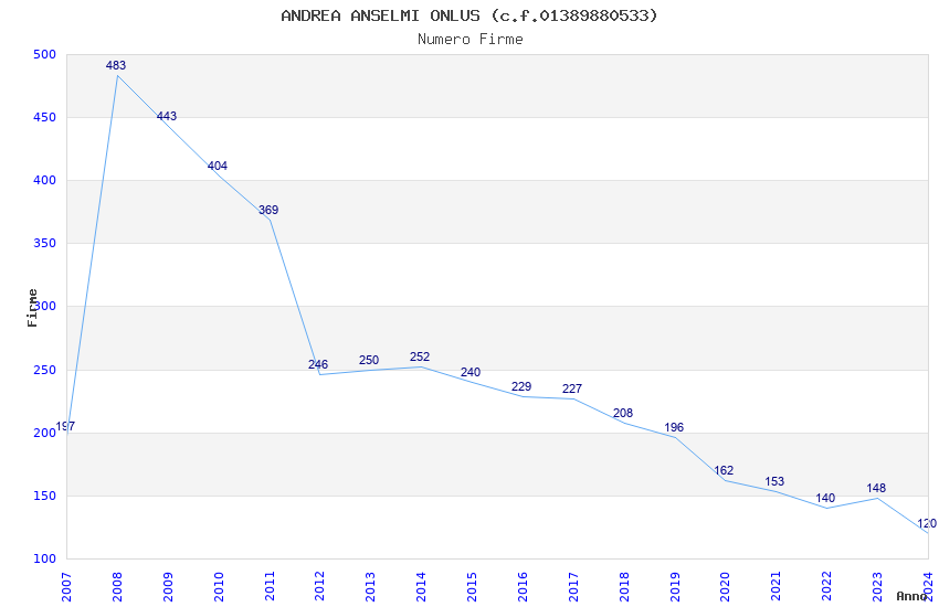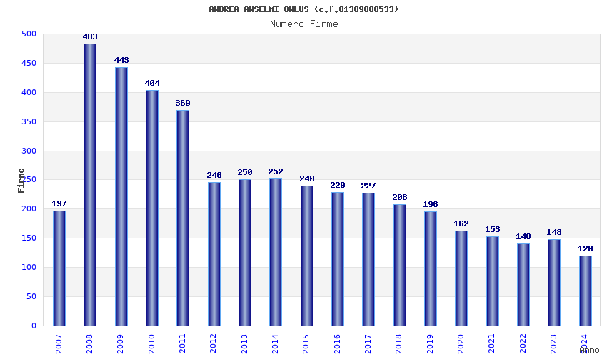 | Anno | Firme | Importi | Media | Naz. | Reg. | Prov. | Comu. |