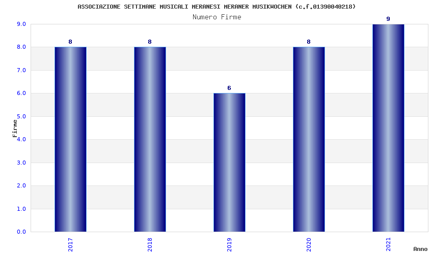| Anno | Firme | Importi | Media | Naz. | Reg. | Prov. | Comu. |