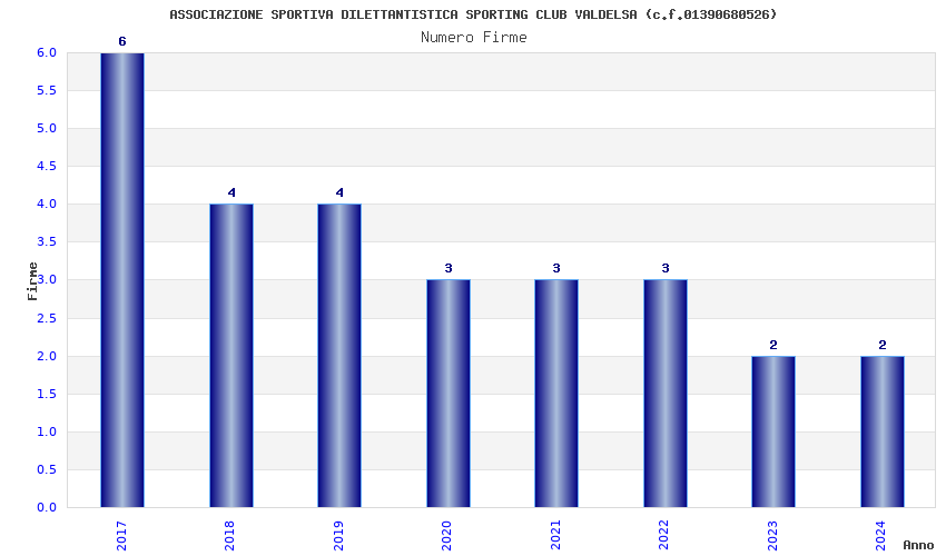 | Anno | Firme | Importi | Media | Naz. | Reg. | Prov. | Comu. |
