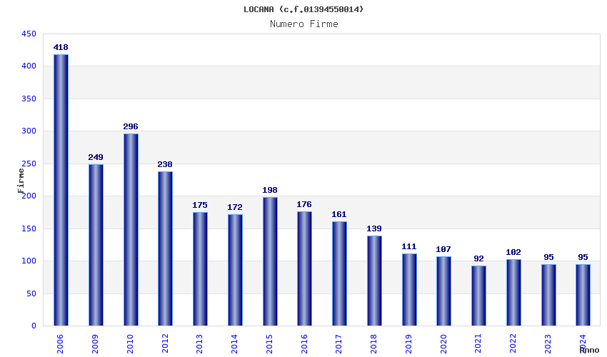 Anno Firme Importi Media Naz. Reg. Prov. Comu.