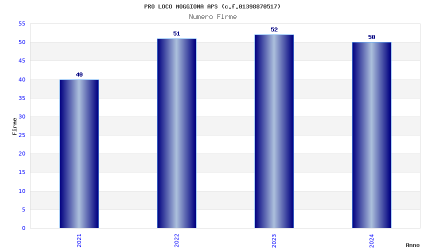 | Anno | Firme | Importi | Media | Naz. | Reg. | Prov. | Comu. |