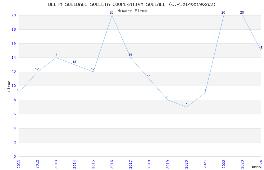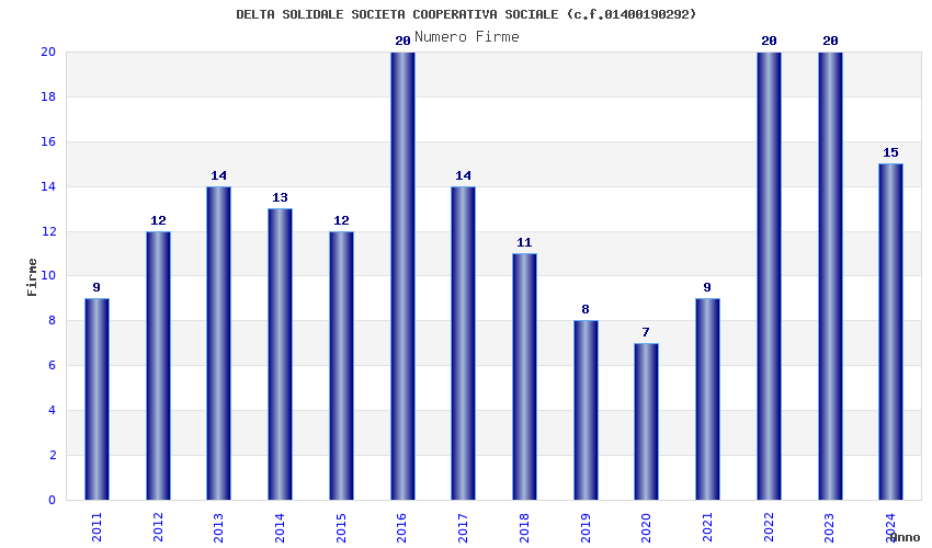 | Anno | Firme | Importi | Media | Naz. | Reg. | Prov. | Comu. |