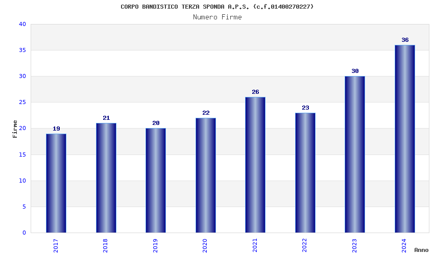 | Anno | Firme | Importi | Media | Naz. | Reg. | Prov. | Comu. |
