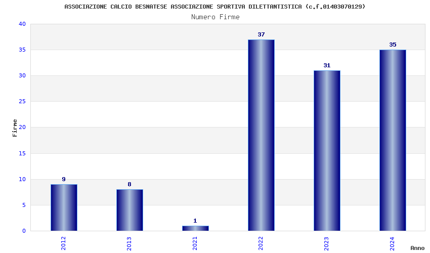 | Anno | Firme | Importi | Media | Naz. | Reg. | Prov. | Comu. |