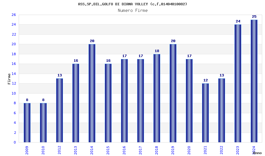 | 2024 | 25 | 593,86 | 23,75 | 47.896 | 1.249 | 134 | 5 |