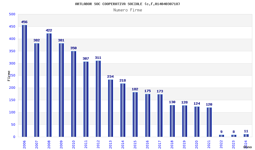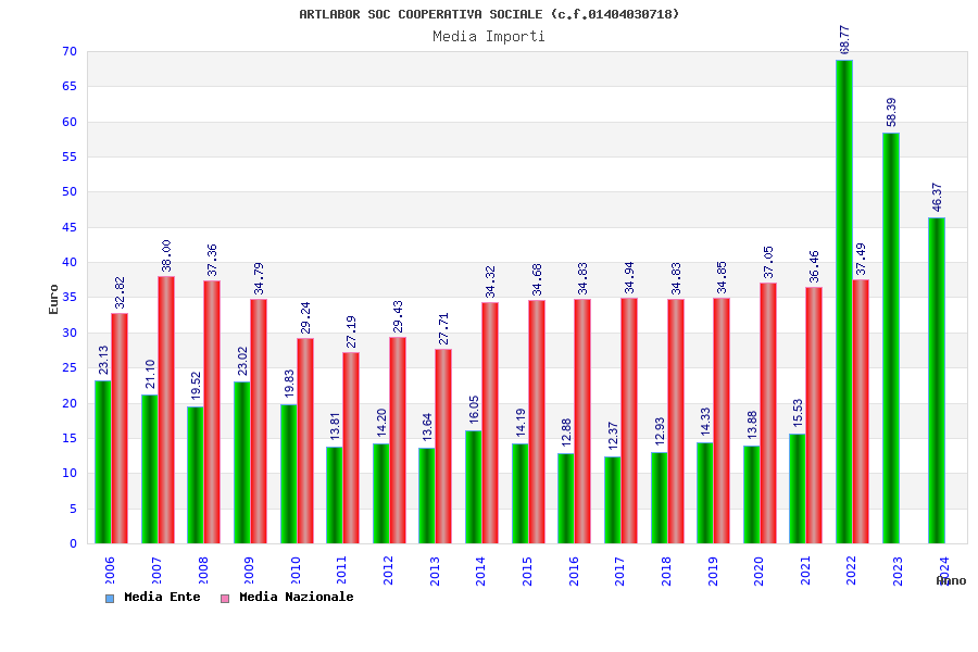 | Anno | Firme | Importi | Media | Naz. | Reg. | Prov. | Comu. |