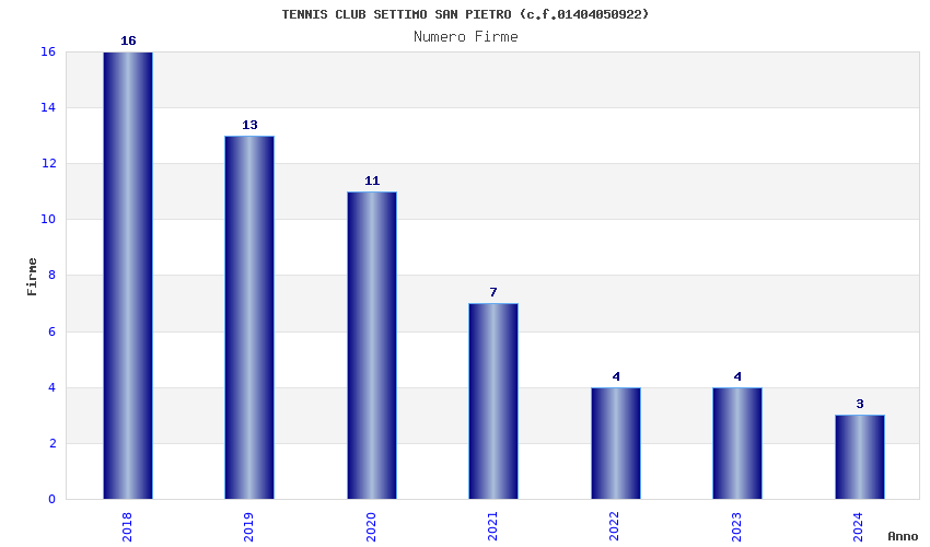 | Anno | Firme | Importi | Media | Naz. | Reg. | Prov. | Comu. |