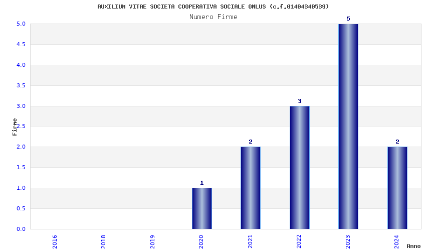 | Anno | Firme | Importi | Media | Naz. | Reg. | Prov. | Comu. |