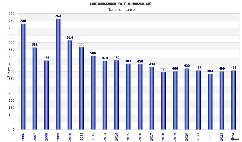 | 2009 | 763 | 17.767,29 | 23,29 | 2.284 | 575 | 37 | 6 |