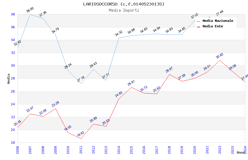 | Anno | Firme | Importi | Media | Naz. | Reg. | Prov. | Comu. |