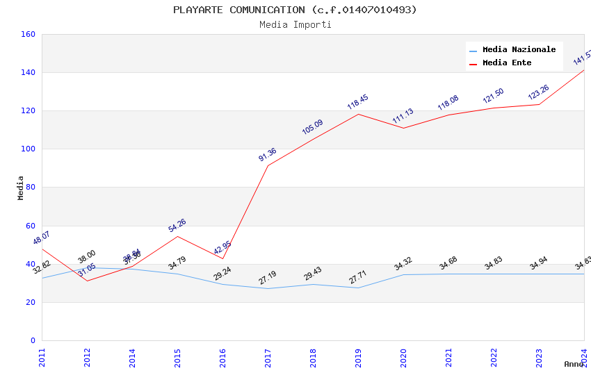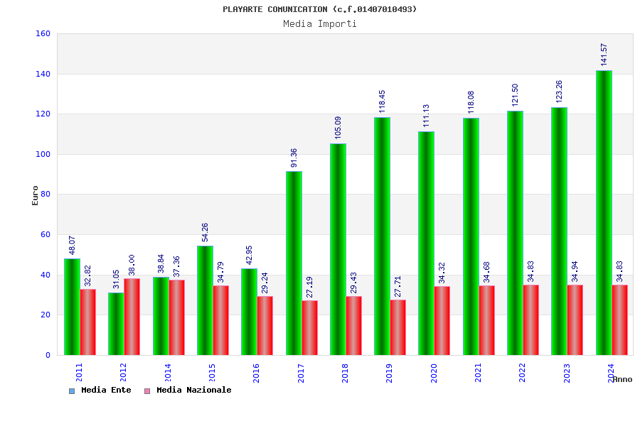 | Anno | Firme | Importi | Media | Naz. | Reg. | Prov. | Comu. |