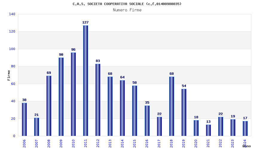 | Anno | Firme | Importi | Media | Naz. | Reg. | Prov. | Comu. |
