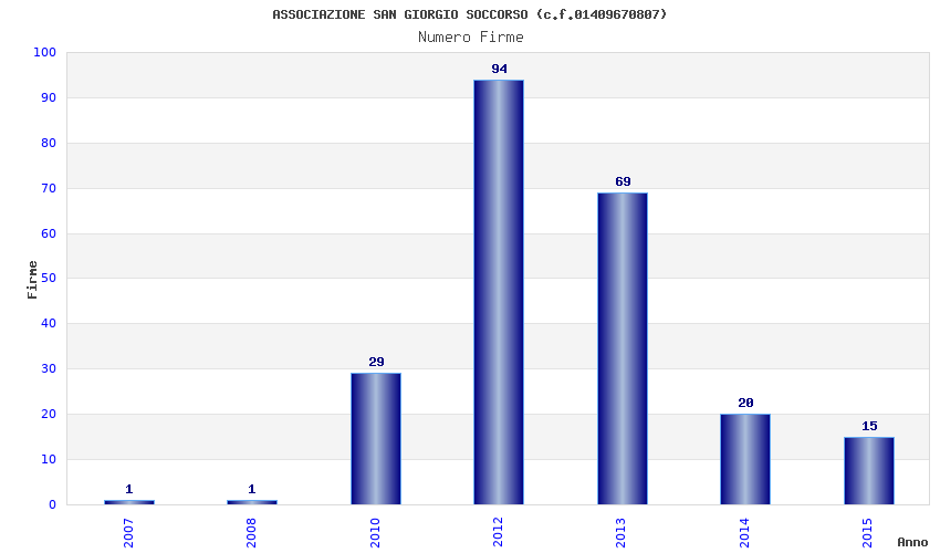 | Anno | Firme | Importi | Media | Naz. | Reg. | Prov. | Comu. |