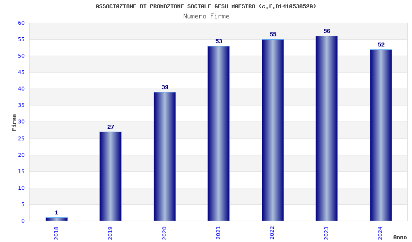| Anno | Firme | Importi | Media | Naz. | Reg. | Prov. | Comu. |