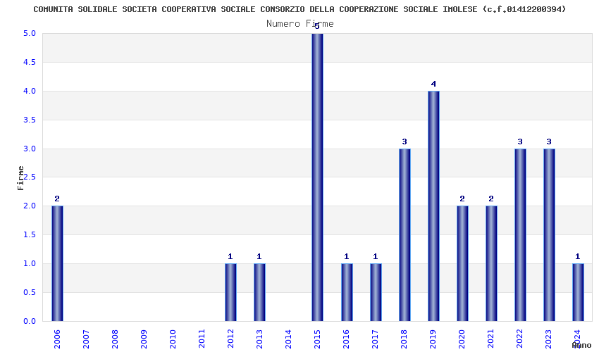 | Anno | Firme | Importi | Media | Naz. | Reg. | Prov. | Comu. |