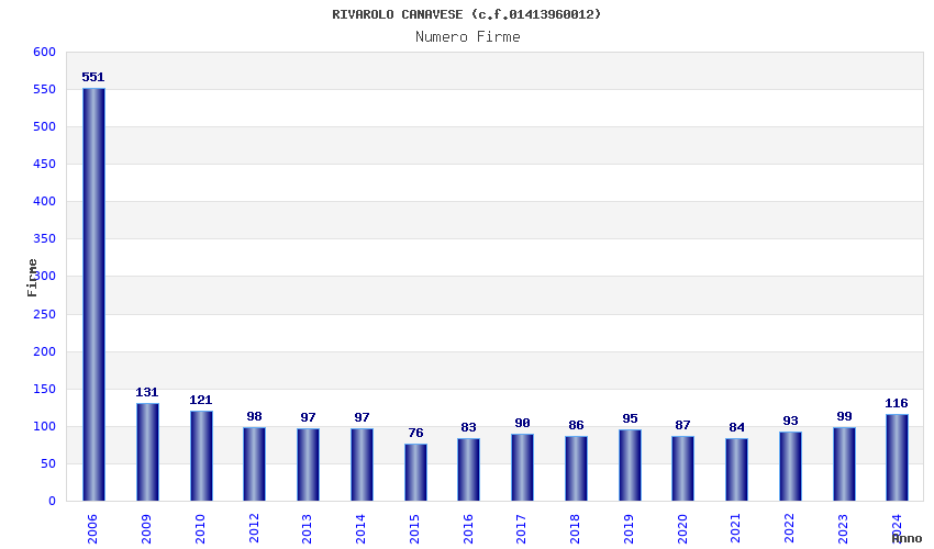 | Anno | Firme | Importi | Media | Naz. | Reg. | Prov. | Comu. |
