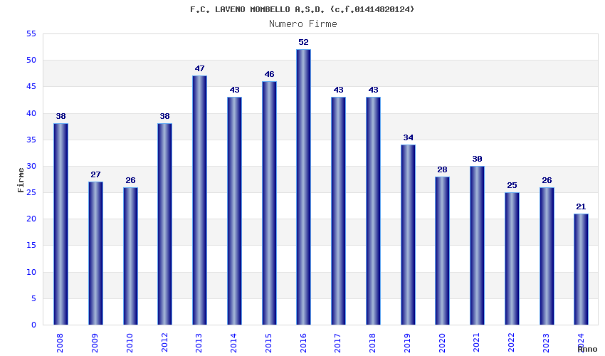 | 2016 | 52 | 2.713,64 | 52,19 | 18.504 | 4.237 | 374 | 5 |