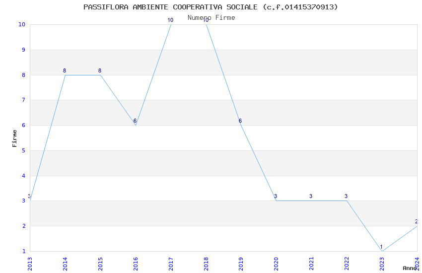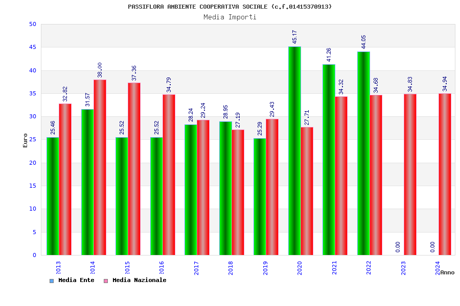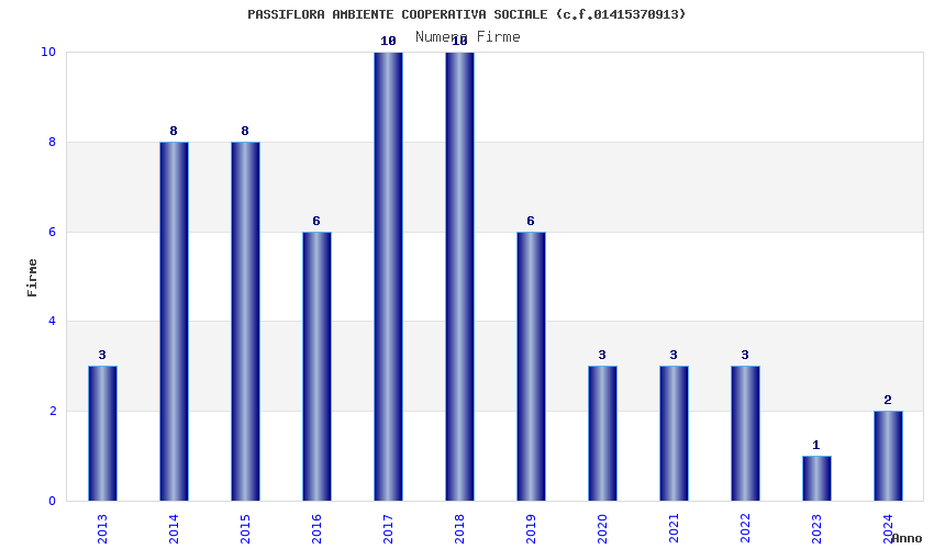 | Anno | Firme | Importi | Media | Naz. | Reg. | Prov. | Comu. |