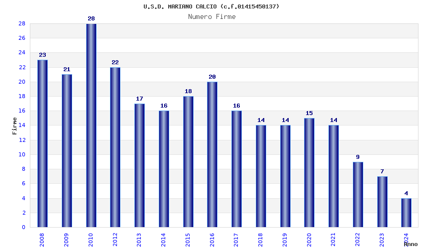 | 2010 | 28 | 757,20 | 27,04 | 26.519 | 5.867 | 384 | 14 |
