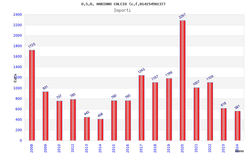 | 2020 | 15 | 2.287,01 | 152,47 | 22.230 | 5.000 | 299 | 9 |