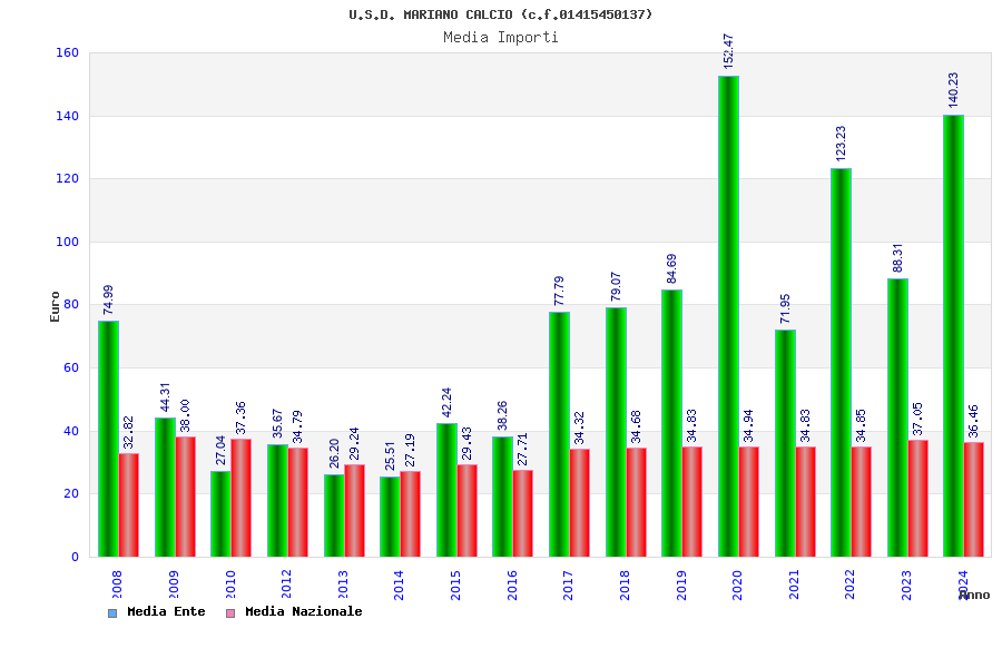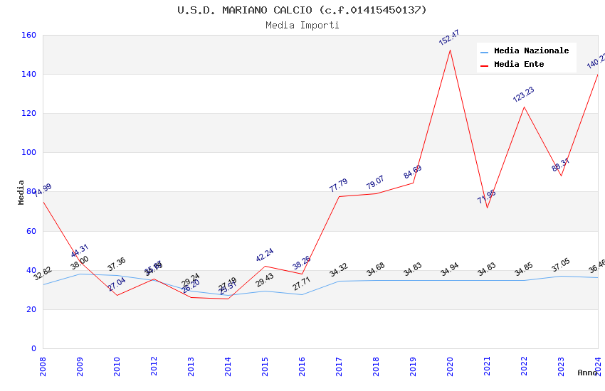 | Anno | Firme | Importi | Media | Naz. | Reg. | Prov. | Comu. |