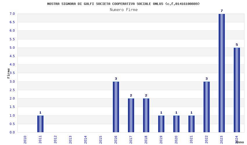| Anno | Firme | Importi | Media | Naz. | Reg. | Prov. | Comu. |