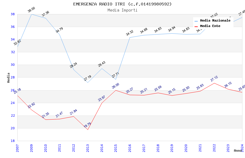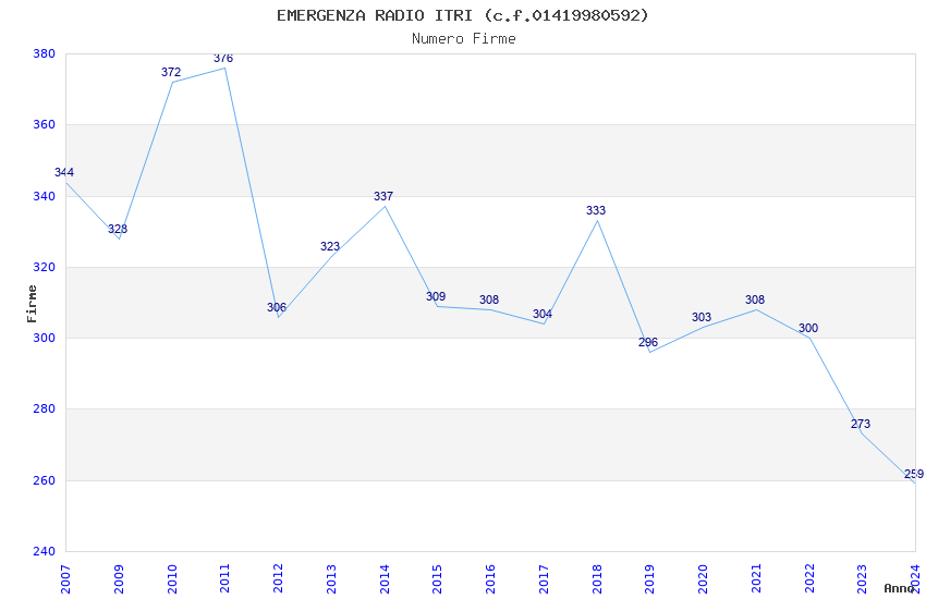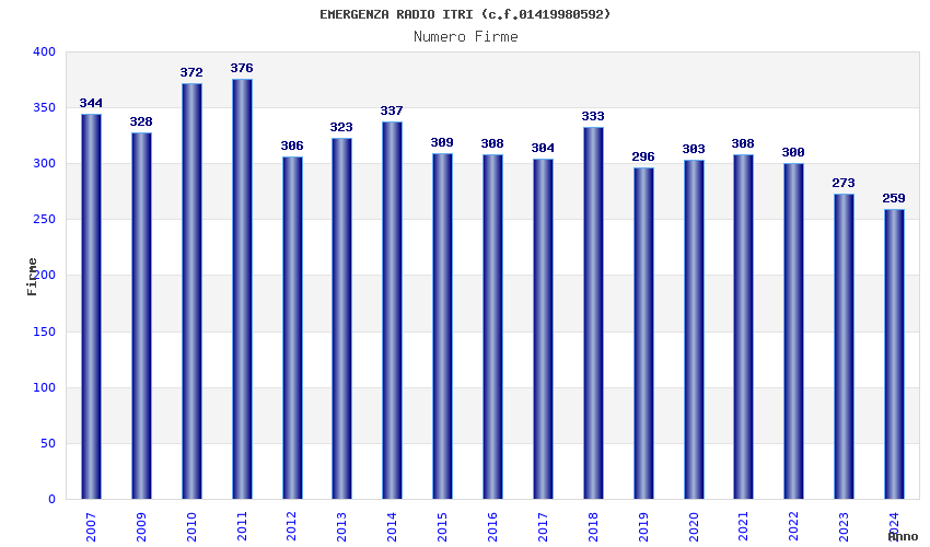 | Anno | Firme | Importi | Media | Naz. | Reg. | Prov. | Comu. |