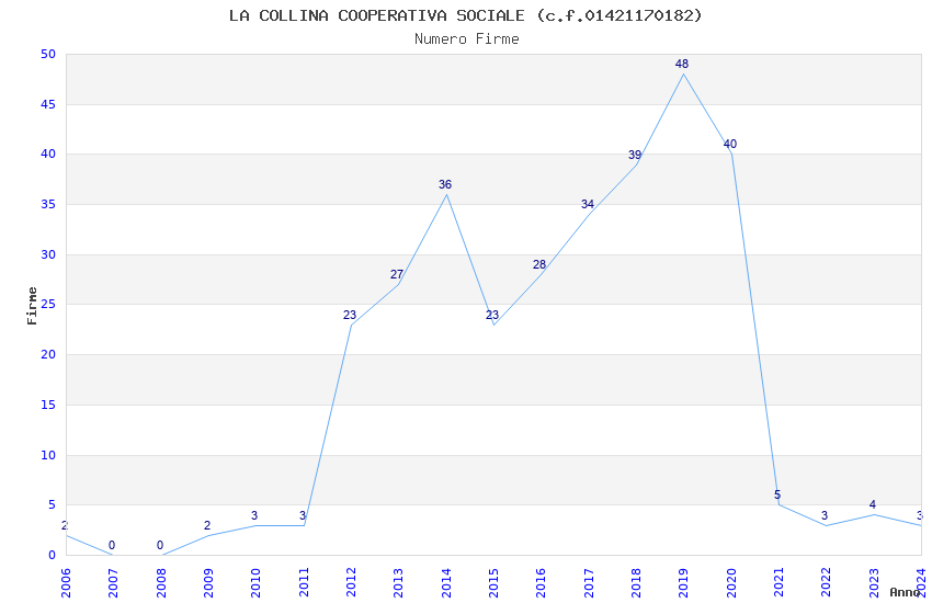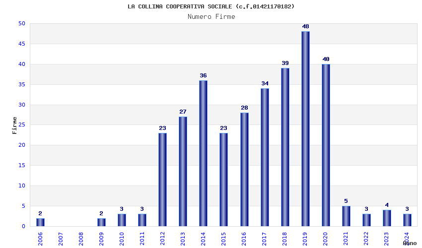 | Anno | Firme | Importi | Media | Naz. | Reg. | Prov. | Comu. |