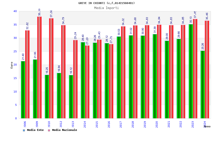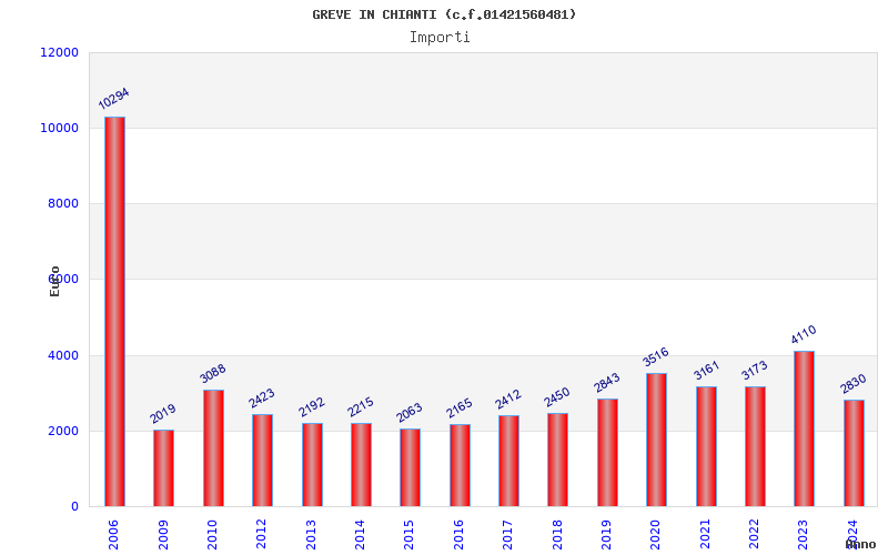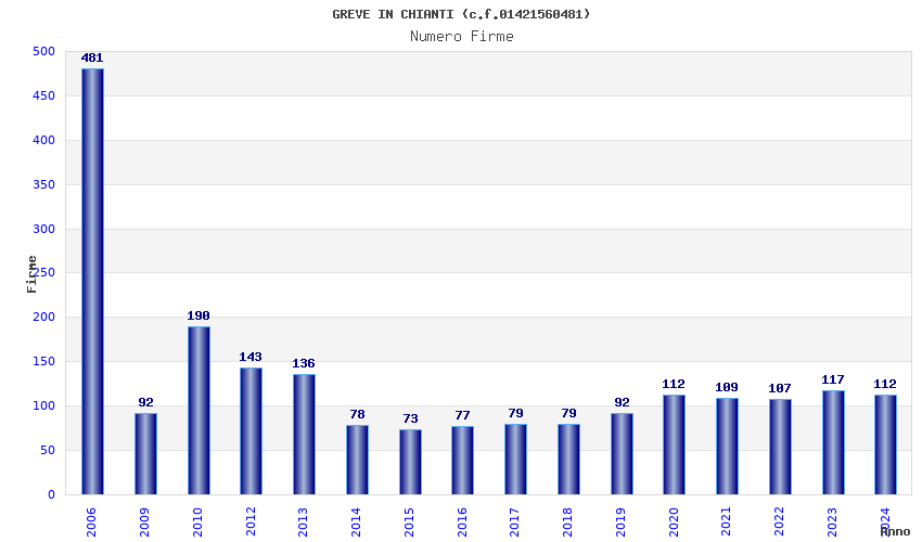| Anno | Firme | Importi | Media | Naz. | Reg. | Prov. | Comu. |